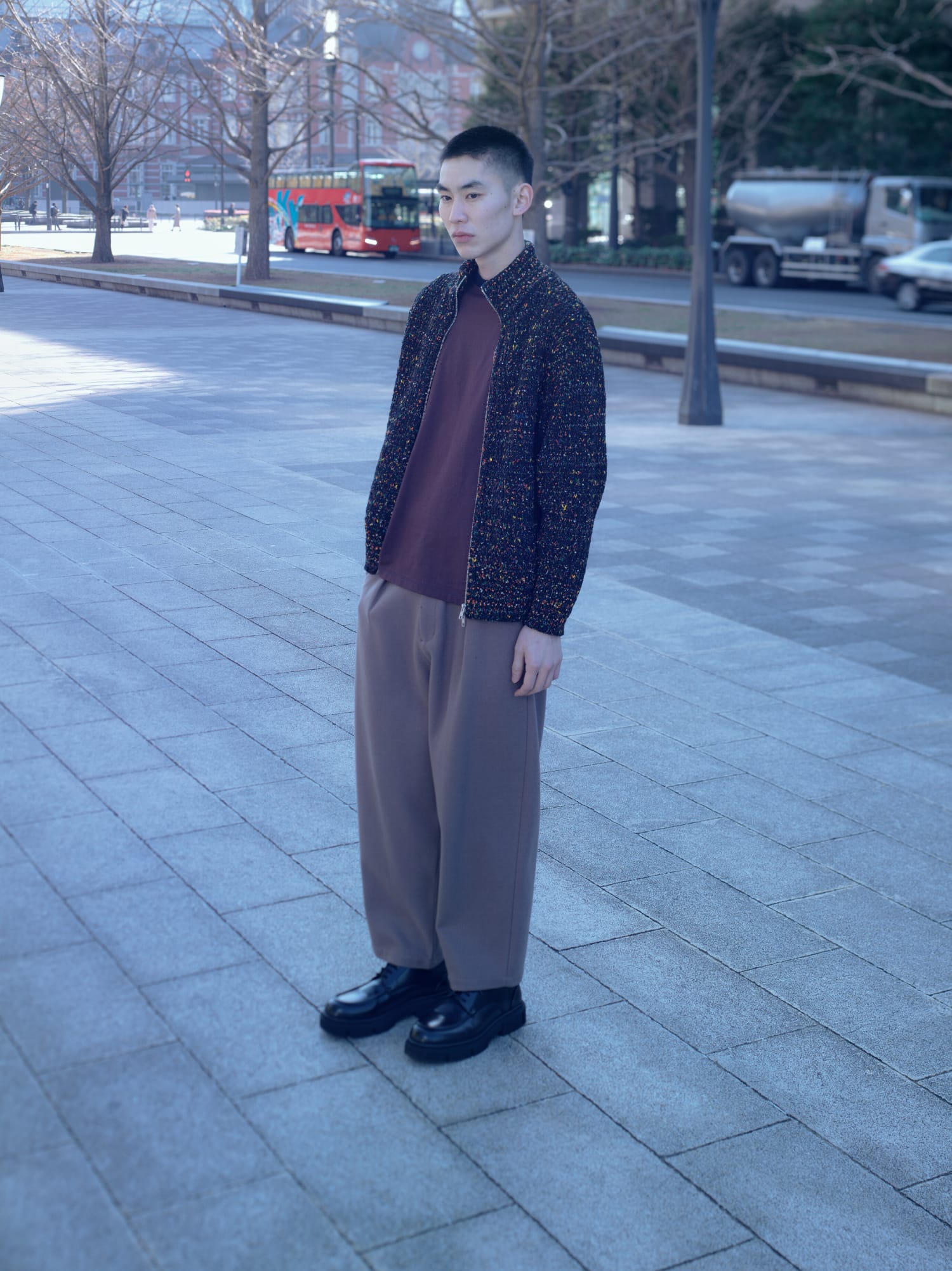 CABLE CHINESE JACKET (13-244-012) / KNIT SIDELINE CORDUROY PANTS (13-244-024)