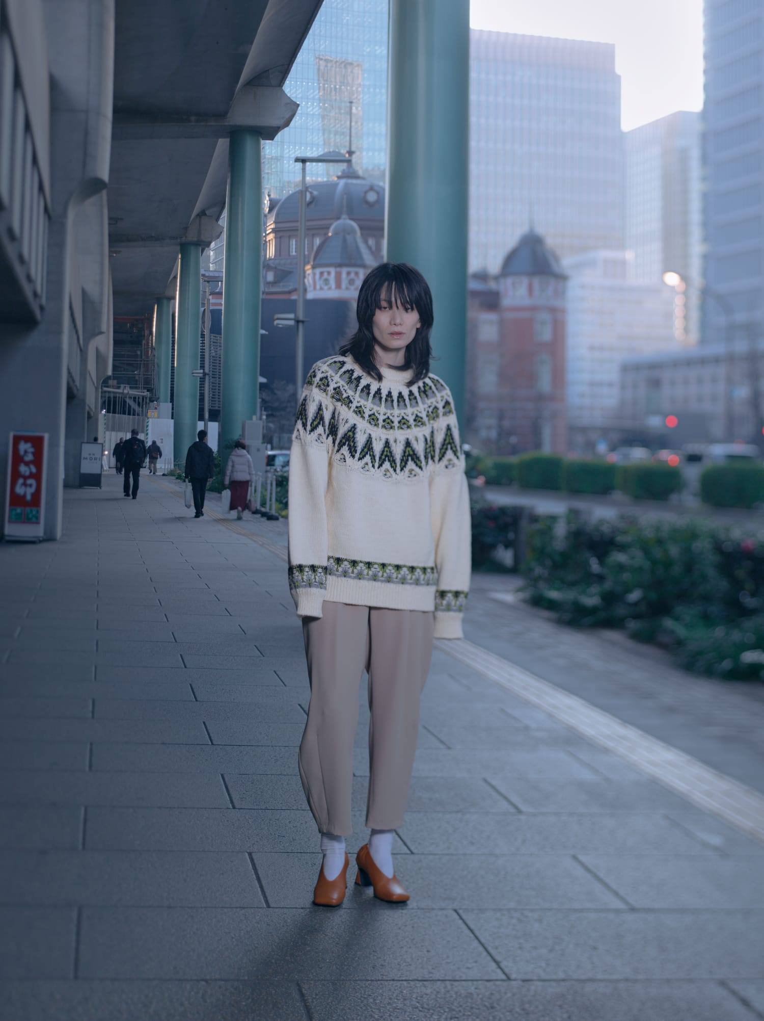 FUR MOLE DUFFLE COAT (13-244-028) / KOUHEN NORIC KNIT PULLOVER (13-244-020)